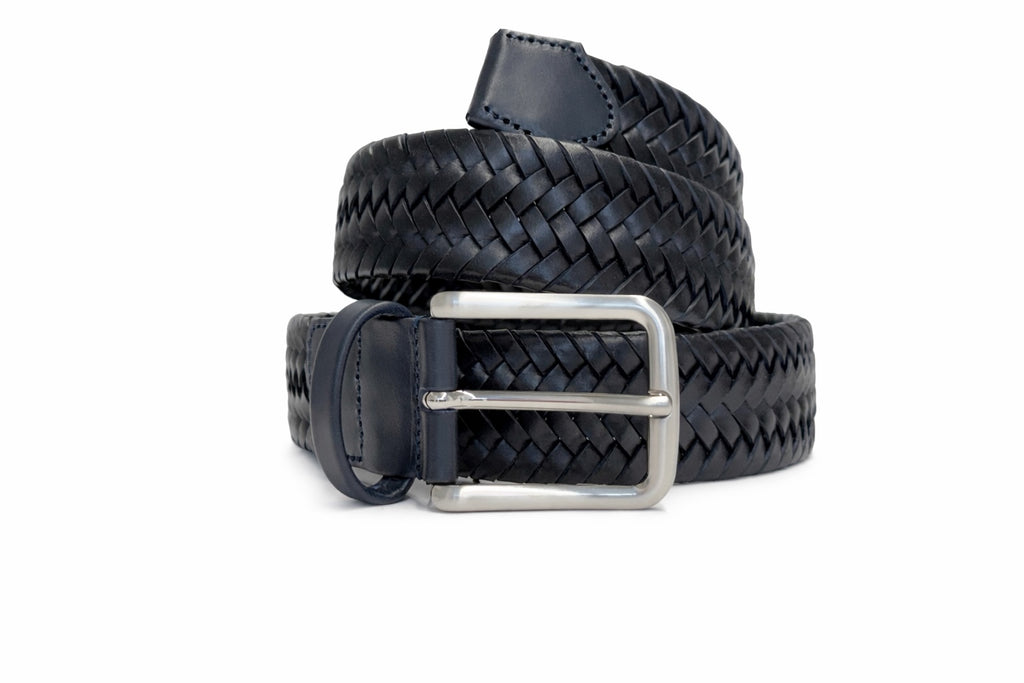 Loungers Woven Leather Belt – Handcrafted Italian Style Premium Braided Belt Navy
